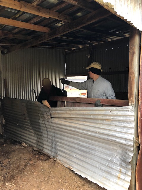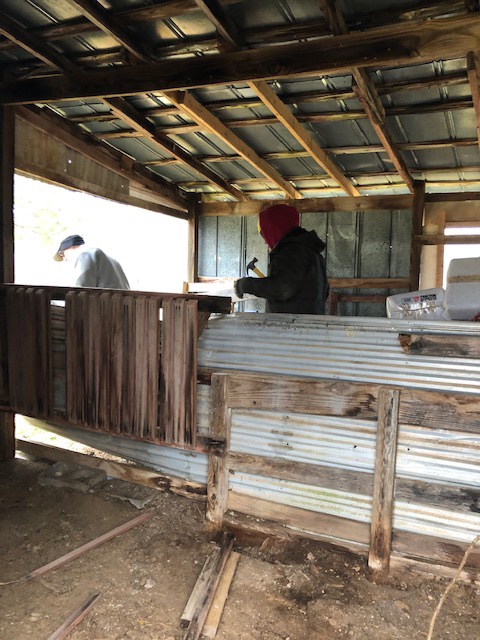 Some of the repair work included removing rotten boards from the roofline and replacing them, tearing out an old wall, putting up a new wall, and stabilizing the center of the barn.