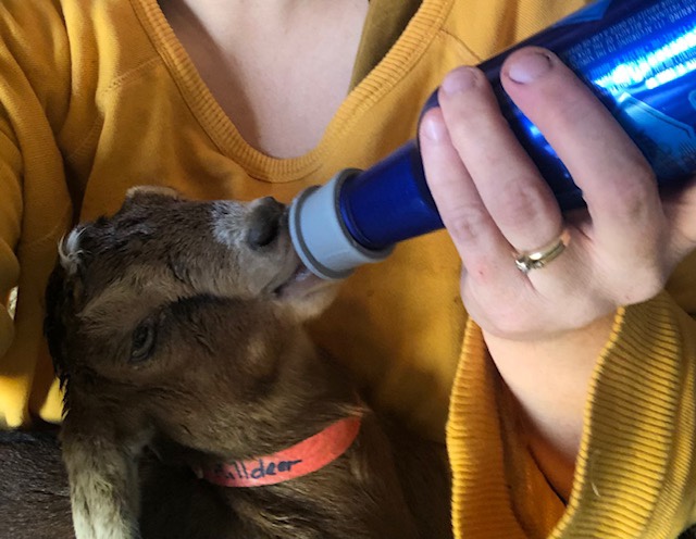 There’s an argument to be had about letting the kids be dam-raised, and that argument has to do with not having to bottle feed kids, and letting nature be natural, and I’m not opposed, but a dam-raised goat may be less friendly and more skittish around people. Some diseases that could be present in the doe can be passed to her kids through nursing, so bottle-feeding can help minimize that risk. Just some things to keep in mind. It really just comes down to safety and the amount of risk you’re willing to take.