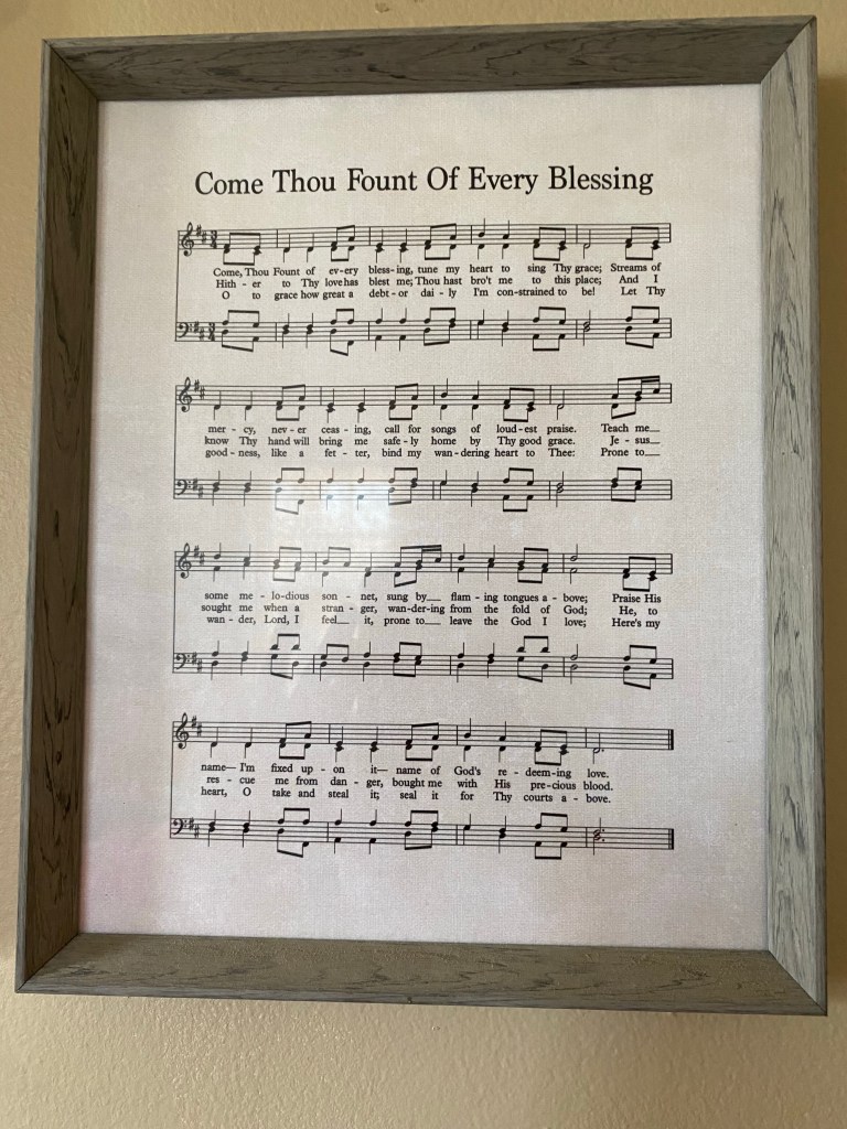 The first was “Come Thou Fount of Every Blessing,” and the second was “Just as Good.”