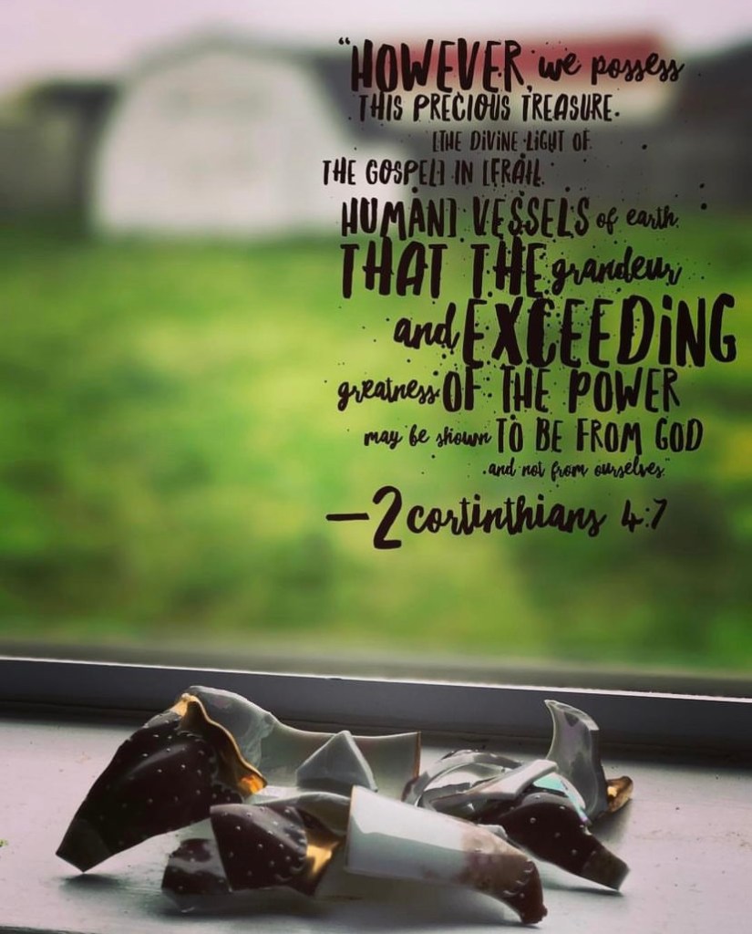 Just as jars of clay once held precious treasure that could only be obtained by smashing the clay, the testimony, witness, and ministry that God has for someone can often only be brought forth by the breaking of that someone. God had to allow my breaking in order to use me.