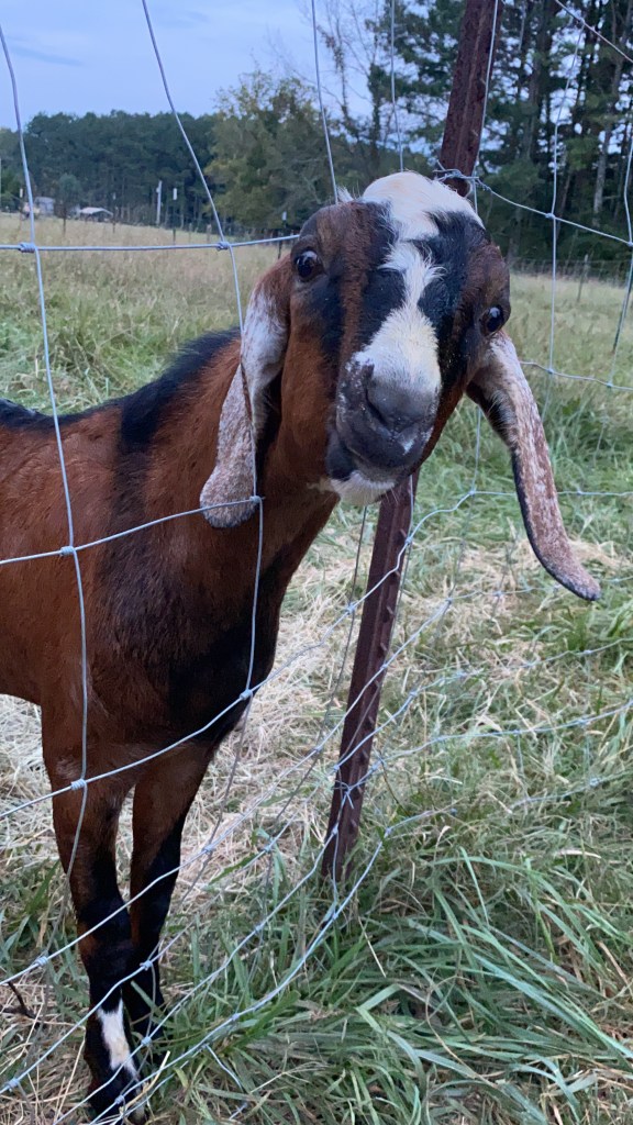 Agnes loves tomatoes and pumpkin, and she isn’t about to share either. Best known for her fruit and veggie hoarding skills.Gloria is a white leghorn hen, and she is about a year old at the time of this photo. Farm fresh, handgathered rainbow eggsOur Light Brahma MidnightWesley the Nubian buckKilldeer, our Nubian dairy goat. “Her name was Lola. She was a show goat.“